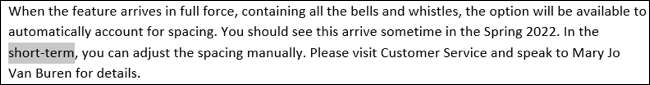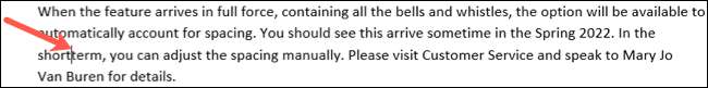 Du bör då se din text justera. Orden på vardera sidan av hårt utrymmet bör vara tillsammans på samma linje.