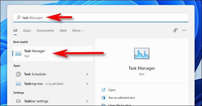 Du kan också öppna Start-menyn och sök efter ”Aktivitetshanteraren”. Det första resultatet bör vara Aktivitetshanteraren app. Klicka på ikonen för att starta verktyget.