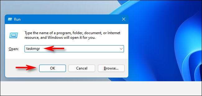 I likhet med kommandotolken kan du också köra Task Manager från Windows Kör. Tryck Windows + R för att öppna fönstret Kör och skriv in