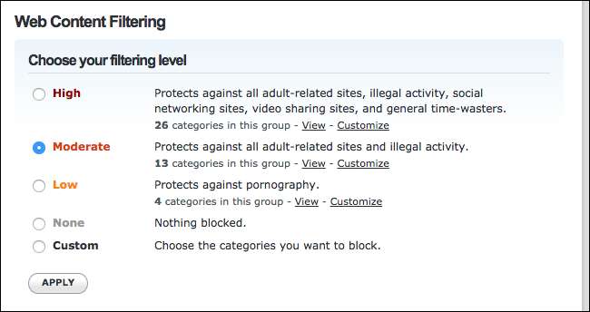 Vi uppmanar dig att använda OpenDNS och dess väl ansedda föräldrakontroll om möjligt, eftersom många av Android-webbfiltreringsapparna verkar inte fungera för bra. De kan också kräva betalda prenumerationer.