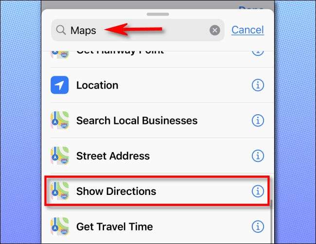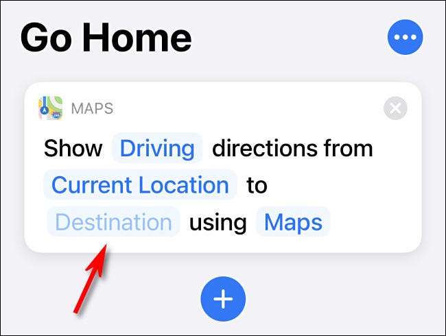 Efter det kommer ”Visa vägbeskrivning” action läggas till din genväg. Nästa knackar ”Destination” i åtgärden bubblan för att ställa in destinationsadress.