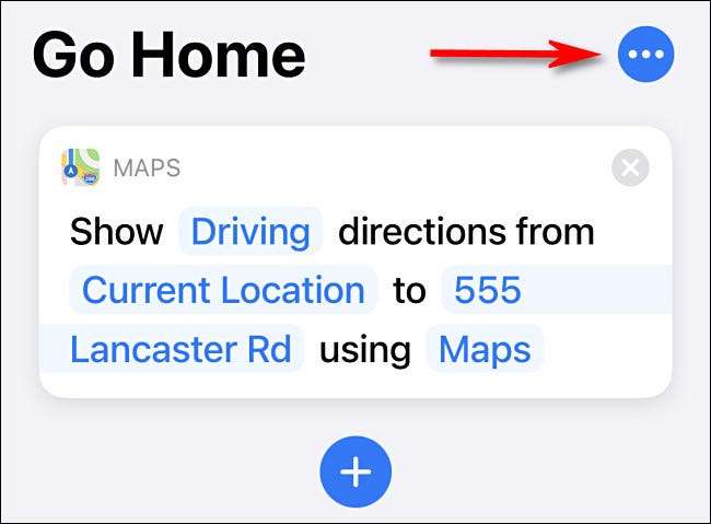 När du ser den nya genvägen sida trycker du på tre punkter knappen (tre punkter) bredvid namnet. På skärmen som dyker upp, ställ in genvägen namn till vad du vill. I vårt exempel använde vi ”Go Home”. När du har ställt in namnet trycker du på ”Klar”.