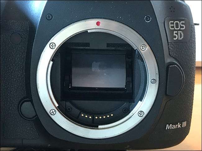 Med det externa överblicket är det dags att ägna ordentligt uppmärksamhet åt det interna. Ta bort eventuella linser som är anslutna till kameran och titta på spegeln. Finns det någon uppenbar skada?