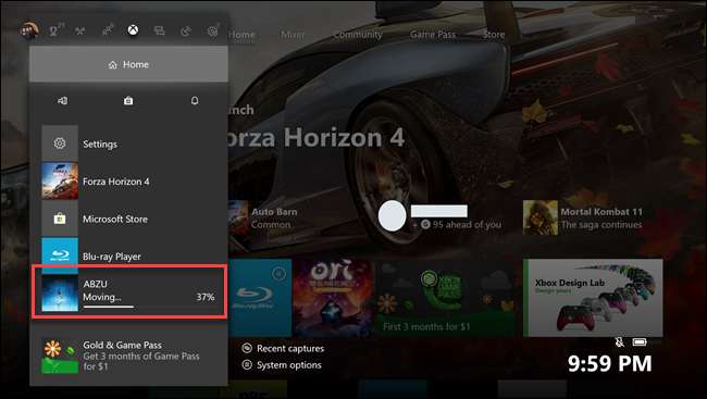 Xbox One börjar kopiera eller flytta spelfilerna till den externa enheten. Du kommer dock inte att se en bekräftelse eller förloppsindikator. Om du trycker på Xbox-knappen ska det första spelet överföras.