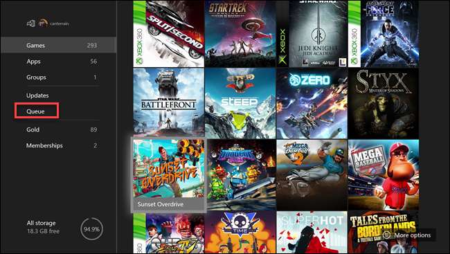 Välj "Kö" i sidofältet. Om du har några spel kvar att överföra visas de här