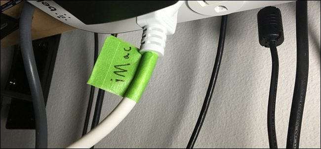 För att göra detta gillar jag att använda maskeringstejp och linda den runt kabeln för att skapa en tagg av olika slag. Därifrån tar du din favorit Sharpie och skriver på taggen vad kabeln går till.
