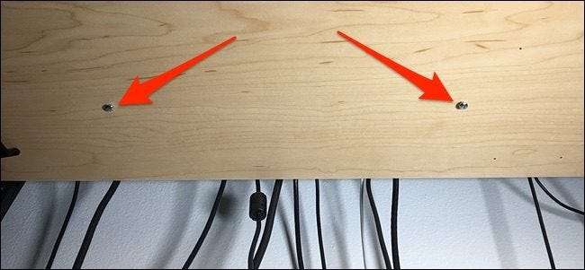 Dock är skrivbordets yta bara ungefär en tum tjock. Om din är densamma, bör du se till att använda korta skruvar som inte kommer igenom, samt använda en tejpbit på borrkronan så att du inte borrar hela vägen genom skrivbordsytan vid borrning pilothål .