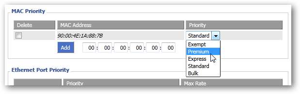 Därefter kan du ändra prioriteten. Om du vill öka den väljer du Premium, eftersom det fungerar bäst. Om du vill sänka den väljer du Standard och använder detta tillsammans med en prioriterad dator någon annanstans i nätverket. Om du verkligen vill vara elak kan du välja Bulk för allvarligt försämrad trafik. Att välja Bulk tilldelar endast betydande bandbredd när alla andra klasser inte tar emot trafik. Detta är perfekt för en BitTorrent- eller FTP-server i ditt nätverk, liksom för att tvinga en felaktig användare att komma och prata med dig om minskad bandbredd.