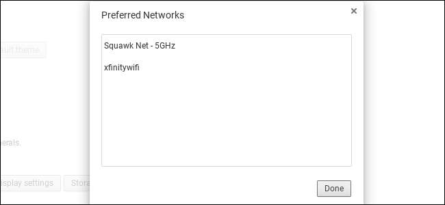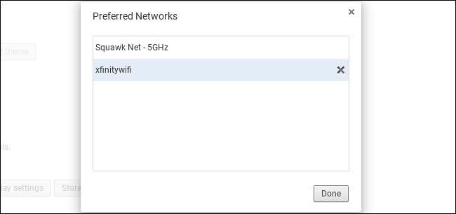 Markera rutan "Föredra detta nätverk" och klicka på "Stäng". Din Chromebook föredrar detta nätverk framför andra när du automatiskt ansluter till Wi-Fi-nätverk.