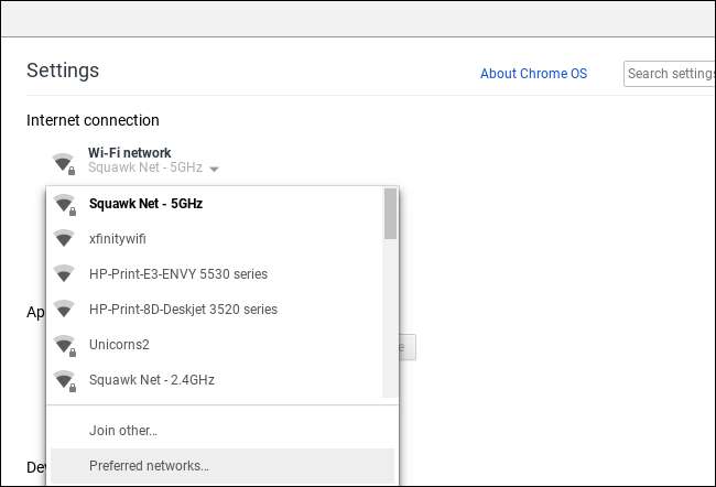 Du ser en lista över de Wi-Fi-nätverk som din Chromebook kommer ihåg. Om det finns flera sparade nätverk nära dig kommer din Chromebook att prioritera de högst upp i listan.