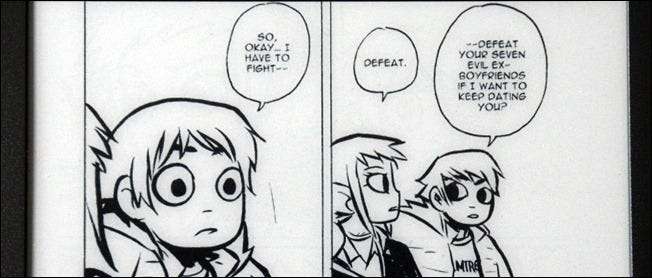 Så här kan du förvänta dig att serier ser ut på din enhet. Vi valde Scott Pilgrim eftersom den extremt enkla och högkontrasterade streckkonsten som används i serien är en bra indikator på hur konstverk i Manga-stil i allmänhet kommer att se ut: