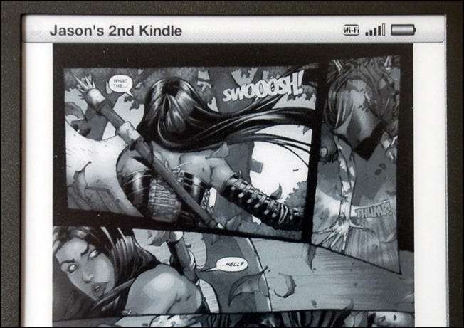Ser fantastiskt ut, eller hur? Det är lätt att läsa, streckbilder och dialogbubblor är skarpa. Och ju nyare Kindle du har, desto bättre kommer det att se ut.