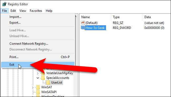 Gå till Arkiv> Avsluta för att stänga registerredigeraren.