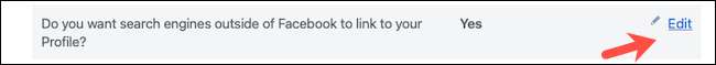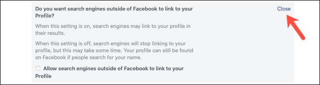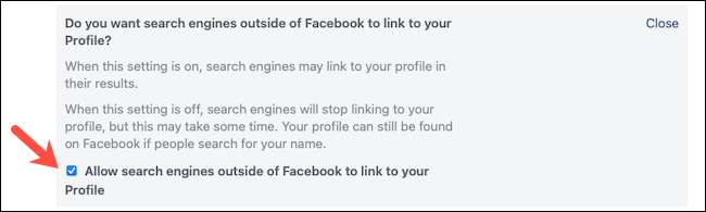 Avmarkera rutan bredvid "Tillåt sökmotorer utanför Facebook för att länka till din profil."