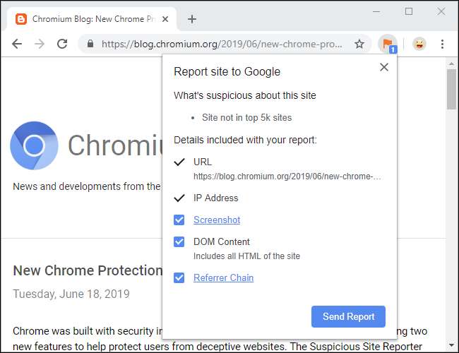 Google gör det nu mycket lättare att rapportera "misstänkta webbplatser" i Chrome. Webbplatser du kanske vill rapportera inkluderar nätfiskewebbplatser, webbplatser som är värd för skadlig kod och liknande dåliga saker. Google kommer att använda dessa rapporter för att blockera webbplatser för alla.