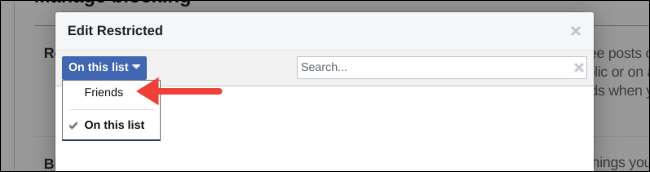 Välj "Vänner" i rullgardinsmenyn i det övre vänstra hörnet av popup-fönstret.