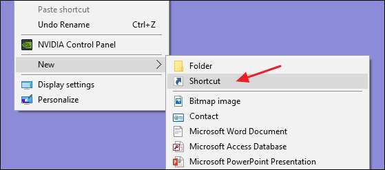 Skapa en genväg genom att högerklicka var som helst i File Explorer eller på skrivbordet och välja Ny> Genväg.
