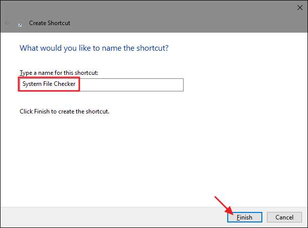 Skriv ett namn på genvägen och klicka sedan på "Slutför".