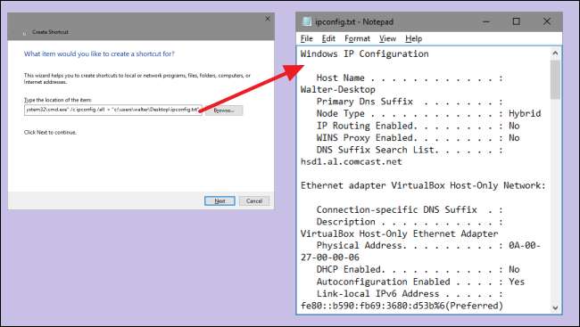 "C: \ Windows \ System32 \ cmd.exe" / c ipconfig / all> "c: \ användare \Användarnamn\ Desktop \ ipconfig.txt "