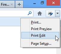 Skriv ut Redigera är ett annat tillägg som kan nås via en verktygsfältknapp - även om det, konstigt nog, är en multifunktionsknapp som vanligtvis är vanlig utskrift. Klicka på pilen till höger om knappen och välj Skriv ut för att komma till jobbet.