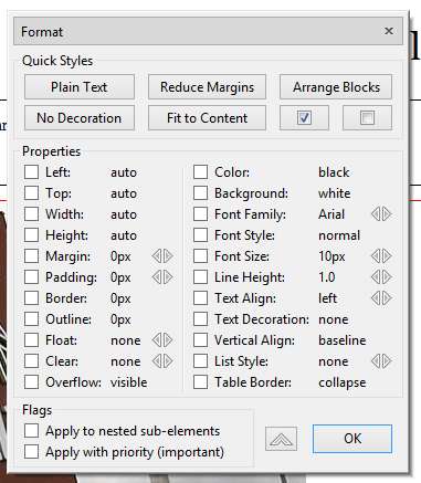 Format-knappen kan användas för att ta bort styling från text, justera teckenstorlek och mycket mer. Om du väljer flera textblock samtidigt kan de också utformas på samma sätt samtidigt, men du har också möjlighet att utforma olika områden individuellt.