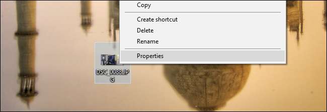 Att visa EXIF-data i Windows är enkelt. Högerklicka bara på det aktuella fotot och välj "Egenskaper".