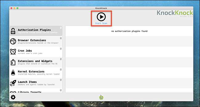 Starta KnockKnock så ser du ett enkelt användargränssnitt. Klicka på "Start Scan" -knappen för att börja.