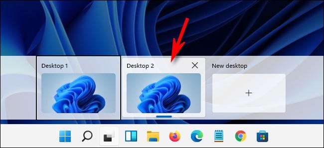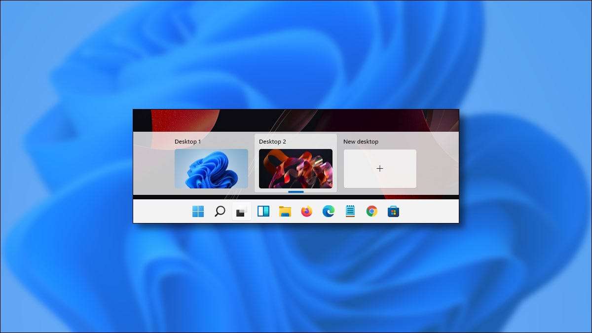 För att komma igång måste du först byta till det virtuella skrivbordet som du vill anpassa. I Windows 11 klickar du på knappen Uppgiftsvy i aktivitetsfältet (det ser ut som två överlappande rutor.).