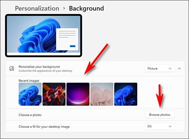 Du kan också klicka på "Bläddra bilder" för att välja en anpassad bild från din dator. (Windows 11s standard bakgrundsbilder är