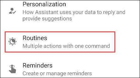 Bläddra igenom listan med inställningar och välj "Rutiner."