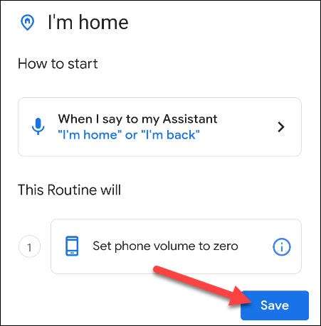 Med en Google Assistant rutin behöver du bara använda ett röstkommando för att sätta telefonen på tyst. Detta är praktiskt om du har en Google Nest talare Eftersom du kan ange din hemadress och helt enkelt säga, "Okej Google, jag är hemma."