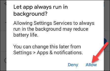 Välj "Tillåt" på popup-meddelandet för att låta tjänsten alltid springa i bakgrunden.