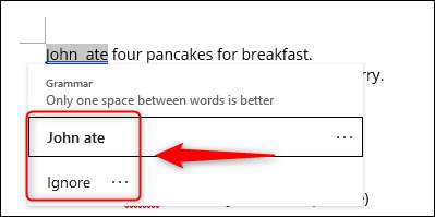 I det ovanstående exemplet upptäckte Word två utrymmen mellan "John" och "åt", så det flaggade det som ett grammatikproblem. Det upptäcktes också "Eaten" var felstavad som "Aten", så det flaggade det som ett stavfel.
