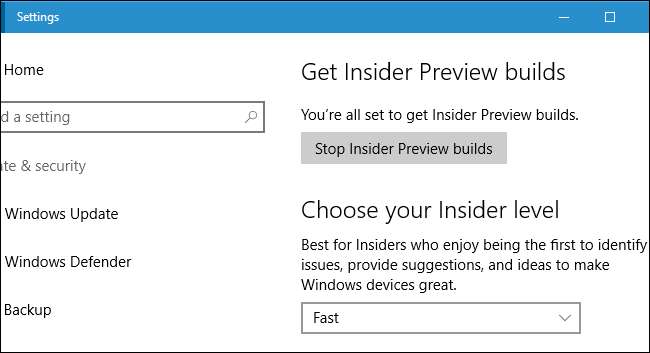 Du behöver inte välja bort Insider Preview-programmet efteråt. Windows 10 börjar inte ta emot Insider Preview-byggnader igen om du inte gör allt för att aktivera dem.