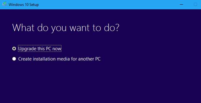 Gå igenom installationsguiden för Windows 10 och välj "Uppgradera den här datorn nu". Verktyget hämtar den stabila versionen av Windows 10 från Microsoft och fortsätter att installera den på din dator och ersätter den instabila versionen av Windows 10.