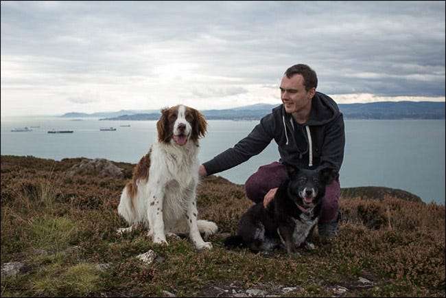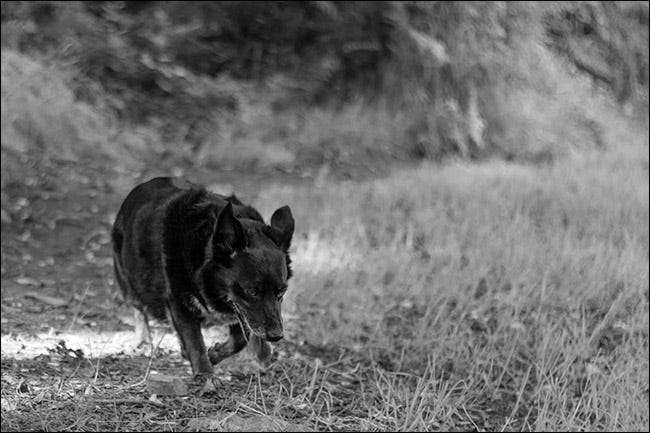 Bra husdjursfotografering är ett volymspel. Ju fler bilder du tar under olika omständigheter, desto mer sannolikt är det att du får ett enda fantastiskt tag. Varje gång du är nära dina husdjur, håll utkik efter en fin bild. Oavsett redskap du har med dig - oavsett om det är en DSLR eller en smartphone —Använd den för att ta bilden. Jag vilade ut på en vandring med min hund när jag fångade detta med min iPhone.
