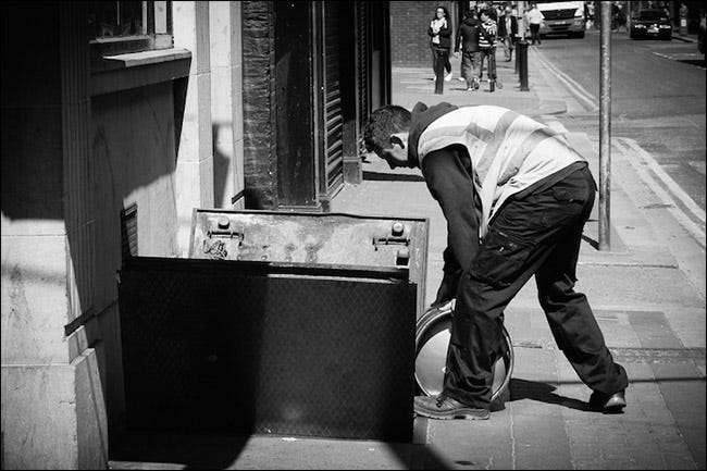 Med gatufotografering letar du efter små, autentiska stunder. Det handlar om dagliga händelser i en stad. Det bästa sättet att ta fantastiska gatufoton är att alltid ha en kamera med sig och bara skjuta bort. Ta bilder av saker som händer varje dag, eller varje gång det regnar eller varje sommar. Ta bilder av de saker som gör din stad unik och de saker som din stad har gemensamt med alla andra. Fortsätt bara ta foton så kommer de goda att komma.