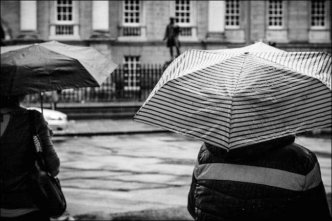 Det första är att välja ett intressant landmärke, montera kameran på ett stativ (eller vila den på en soptunna, parkbänk eller något annat) och ta ett foto. Folket kommer att suddas ut men landmärket inte. Här är ett skott som jag gillade utanför Trinity College, Dublin.