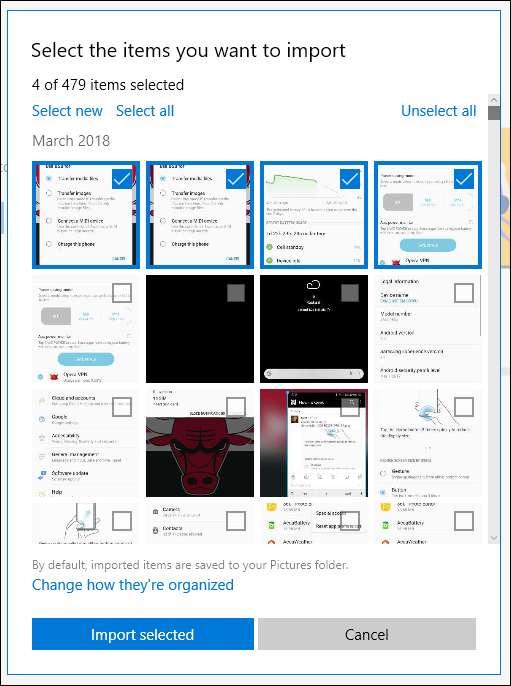 Med dina bilder och organisationsalternativ valda, tryck på knappen "Importera valt" längst ner. som magi importeras bilderna till din dator.