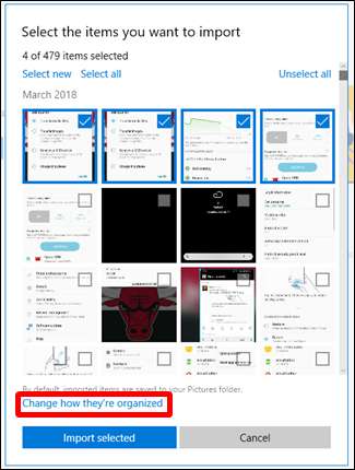 Du kan dock ändra denna organisation. Klicka bara på länken "Ändra hur de är organiserade" längst ner. Härifrån kan du välja en ny mapp om du vill, samt ett annat sorteringsalternativ. För mer detaljerad organisation kan du välja datum (vilket kommer att skapa olika mappar), eller så ordnar du dem efter år för att minimera antalet nya mappar.