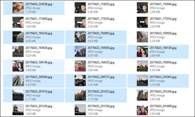 Välj alla bilder som du vill överföra. Precis som i andra Windows-mappar kan du välja ett antal foton genom att klicka på det första fotot du vill ha och sedan Skift + klicka på det sista fotot i intervallet. Eller så kan du välja flera bilder i taget genom att Ctrl + klicka på dem.