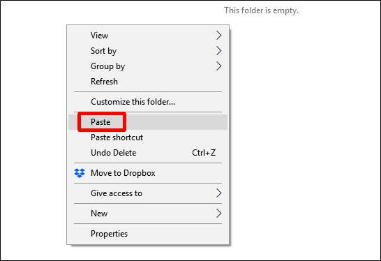 Navigera till den mapp där du vill att bilderna ska gå, högerklicka på ett tomt utrymme i mappen och välj sedan kommandot "Klistra in" (eller tryck Ctrl + V).