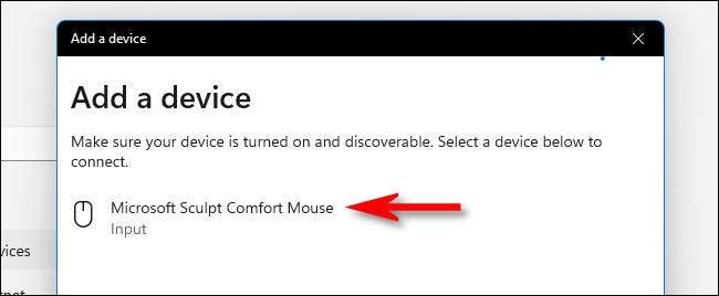 Windows kommer in Avkänningsläge och kontinuerligt fortsätta söka efter enheter som är i kopplingsläge. När den hittar dem, kommer de att visas i en lista i pop-up fönster. När du ser den enhet du vill ansluta till klickar du på namnet i listan.