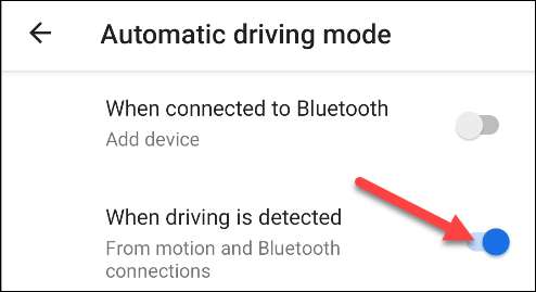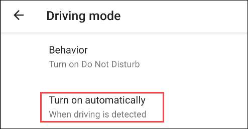 Det andra alternativet är "när körning detekteras." Detta kommer att använda telefonens rörelse för att upptäcka när du kör.