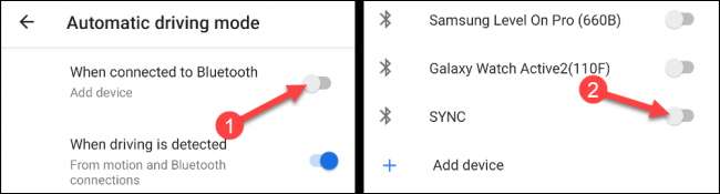 Det finns några alternativ på den här sidan. Om du alltid ansluter till samma Bluetooth-enhet under körning, till exempel ditt fordonets infotainment-system, kan du välja det. Växla omkopplaren för "När den är ansluten till Bluetooth" och välj en enhet från listan.