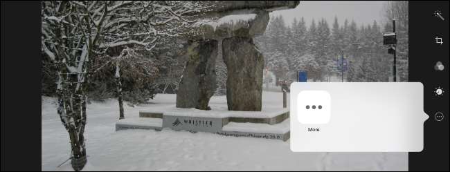 Gå först till appen Foton och öppna ett foto eller en video som du vill redigera. Tryck på knappen Redigera i det övre högra hörnet. Efter att ha knackat på Redigera, tryck på knappen ... och sedan på Mer.