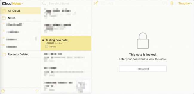 Medan du kan komma åt låsta anteckningar genom att ange ditt Apple ID-lösenord, kan du inte tillämpa ett lås till befintliga eller nya anteckningar.