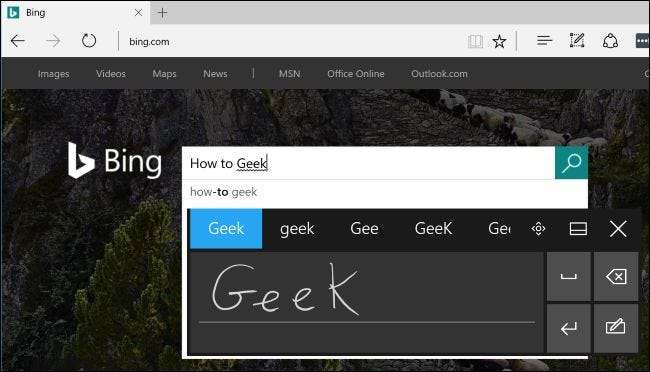 Edge-pennstöd tillåter dock inte att du skriver in text på webbsidor. För att göra detta måste du fokusera ett textfält i Microsoft Edge och öppna handskriftstangentbordet.