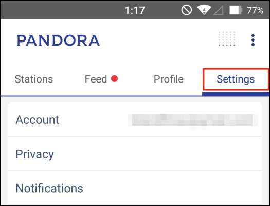 För att aktivera ett larm med Pandora, starta först appen och tryck sedan på "Inställningar". På Android finns inställningarna i det övre högra hörnet av appen.