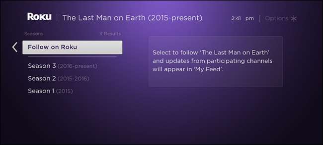 Du kan bläddra bland säsonger för att strömma och köpa härifrån, eller så kan du bläddra ner till alternativet "Följ på Roku" längst ner i listan.